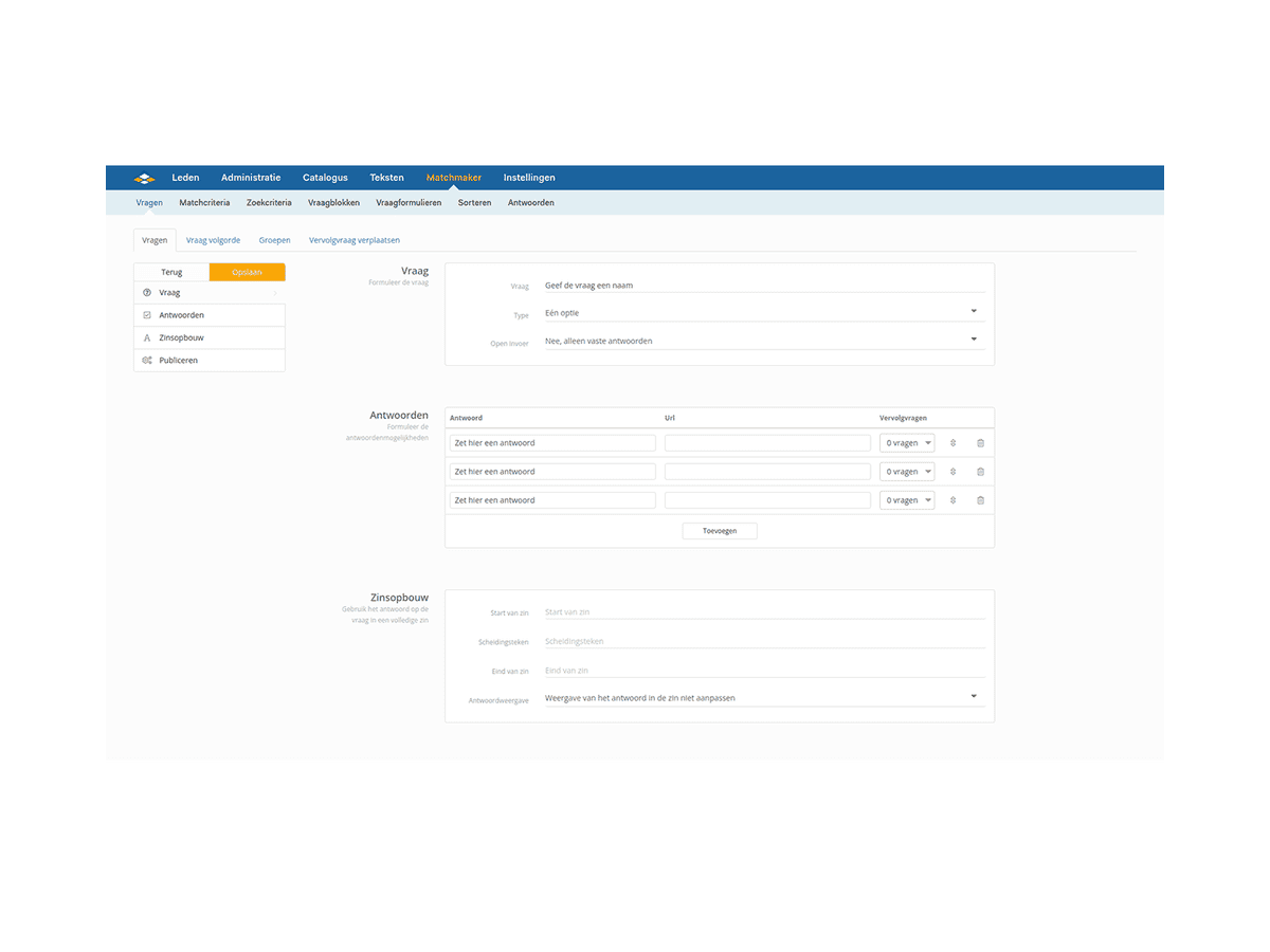 - Ga naar Matchmaker > Vragen > Vragen