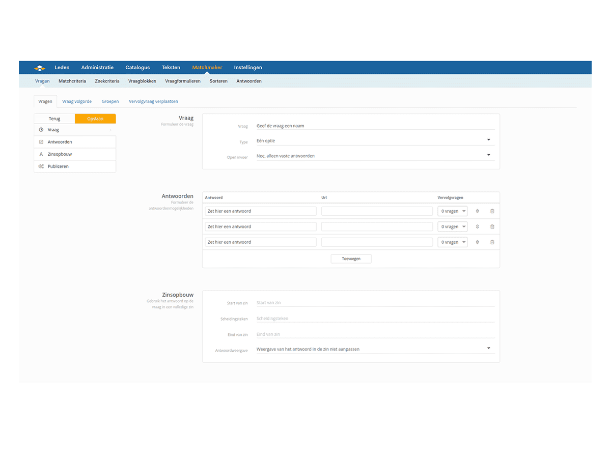 - Geef eventueel de antwoorden op die geselecteerd mogen worden. Vul hier enkel het rijtje ‘Antwoord’ in, url wordt automatisch gegenereerd