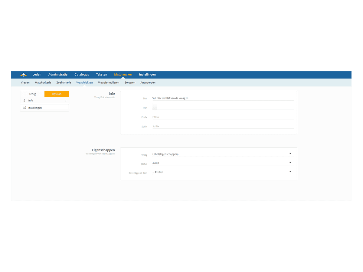 Je kunt nu vraagblokken inrichten voor de profielpagina.