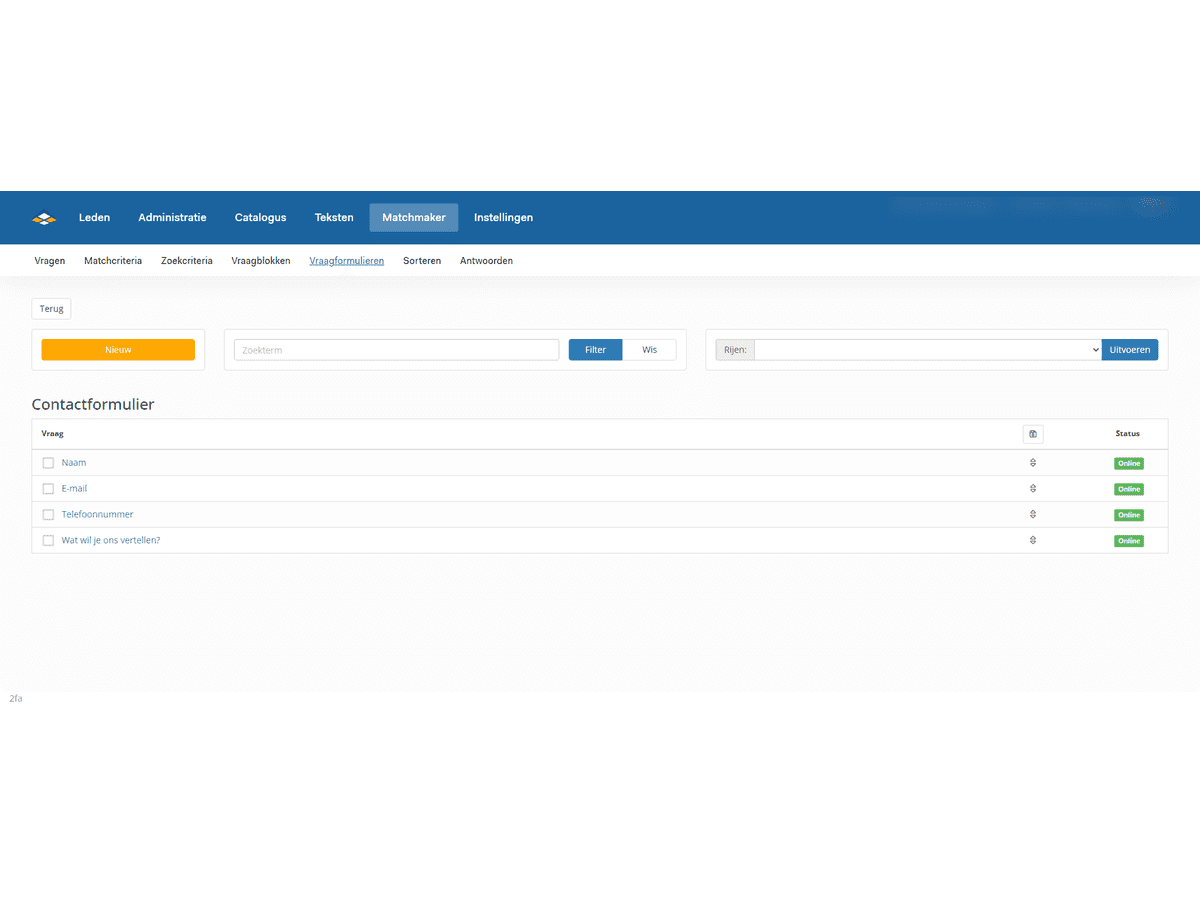Binnen SiteCMS is het mogelijk om formulieren te beheren. Hiervoor kun je als beheerder zelf vragen aanmaken in de matchmaker en deze vragen toevoegen aan het gewenste formulier. Deze formulieren kunnen op verschillende plaatsen in de website worden gebruikt.
