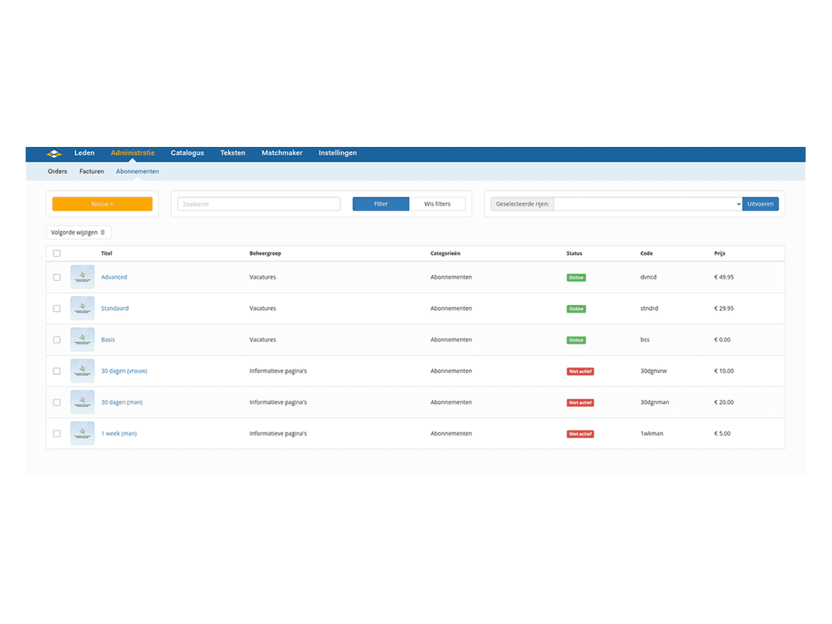Binnen het systeem kun je meerdere abonnementen toevoegen. Daarbij heb je de mogelijkheid om de volgorde van deze abonnementen te bepalen.