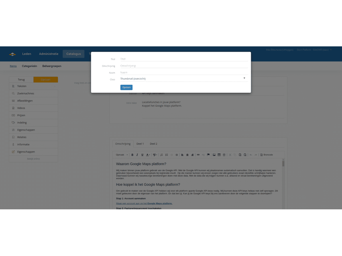 Wanneer je met je muis over de gewenste afbeelding die je als overzichtsafbeelding in wilt stellen in SiteCMS gaat, dan opent er een menuutje bij de afbeelding. In dat menu wordt een i icoon getoond. Wanneer je daar op klikt dan kan je de afbeelding een class geven. Je moet daar de class overzicht kiezen. Dan komt de afbeelding in alle overzichten te staan en ook op de homepage.