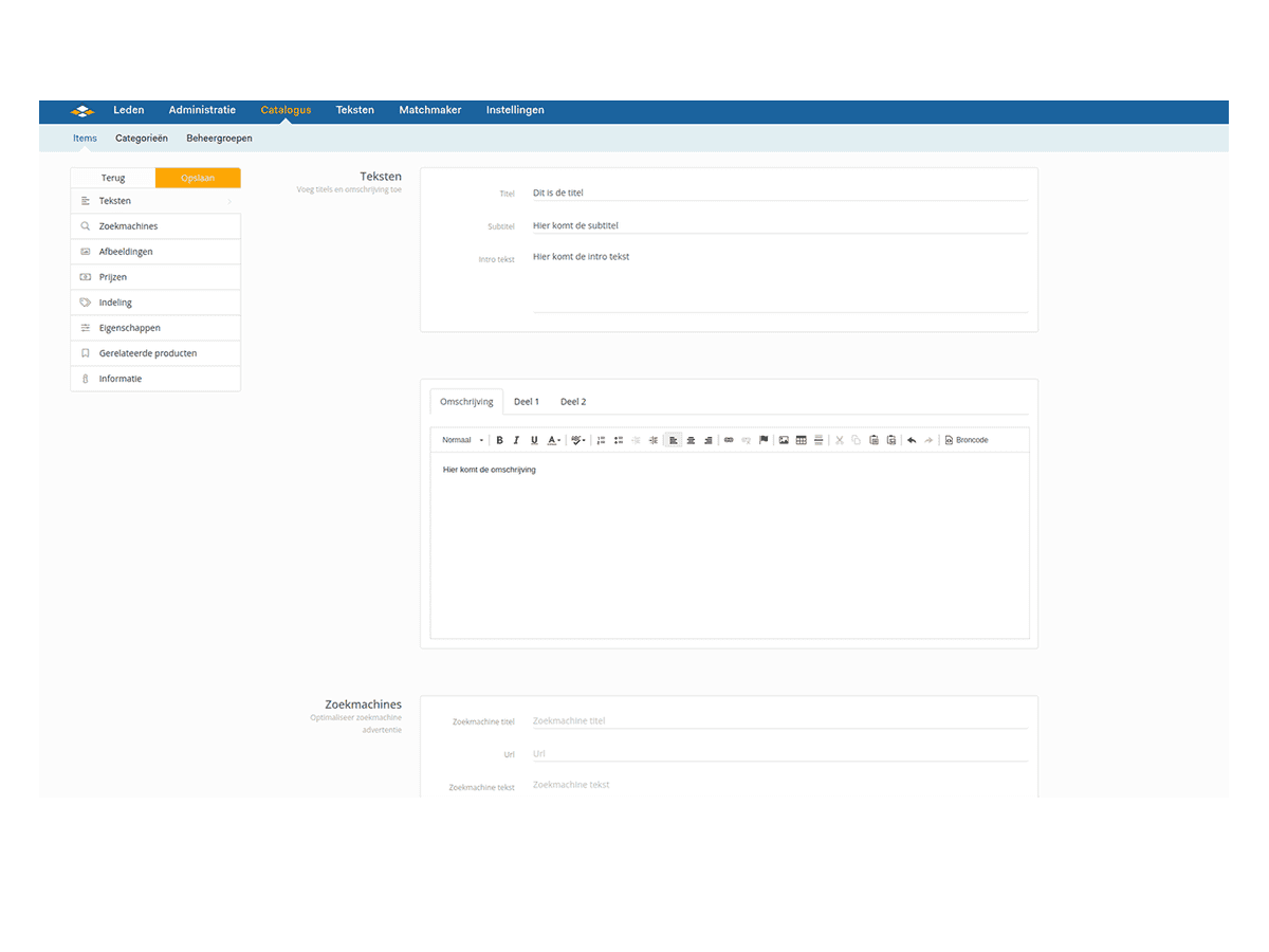 - Vul de volgende onderdelen in: titel, subtitel, introtekst en omschrijving.