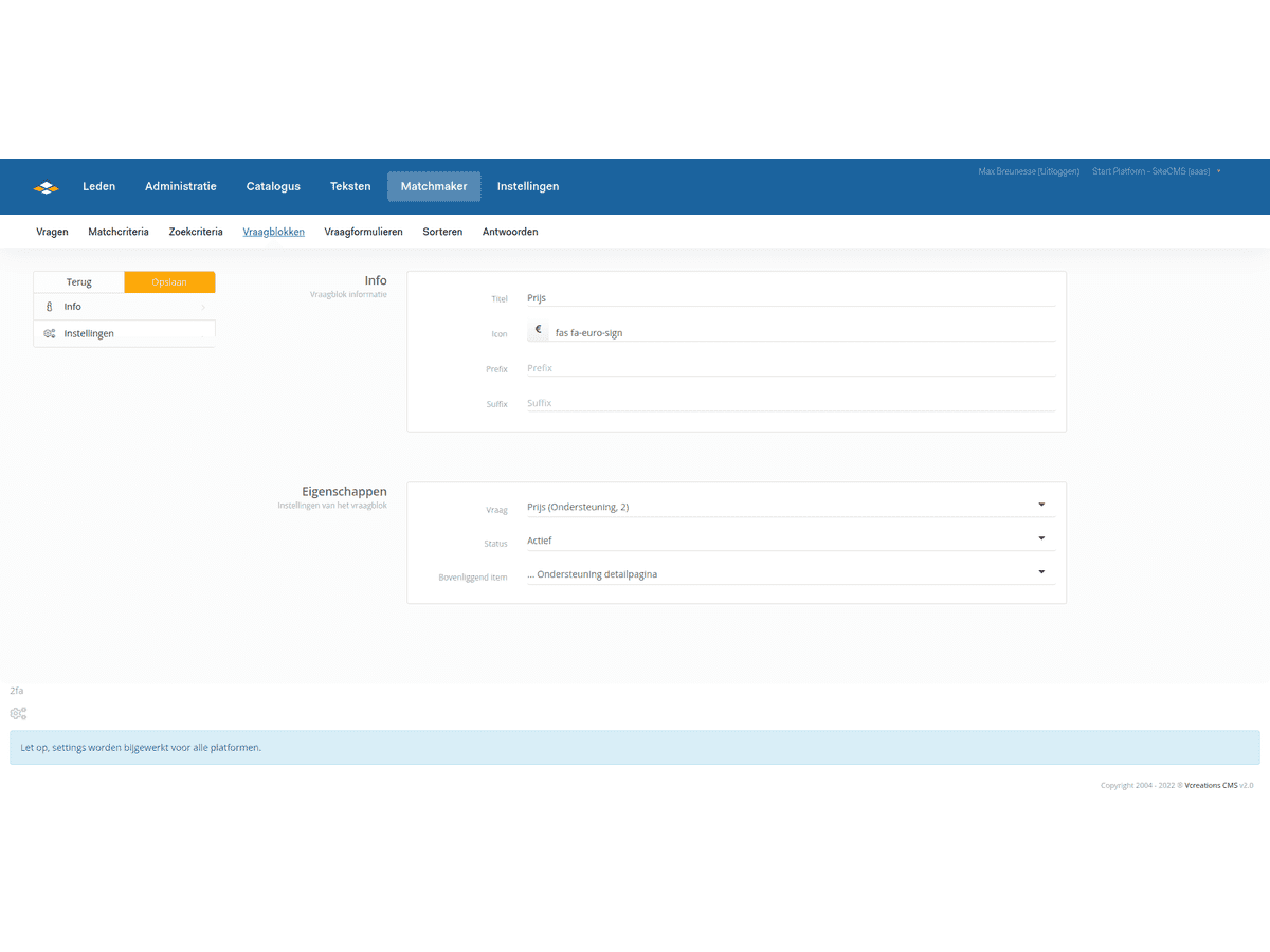 1. Ga naar SiteCMS> Matchmaker> Vraagblokken. Je komt nu in het overzicht van alle vraagblokken