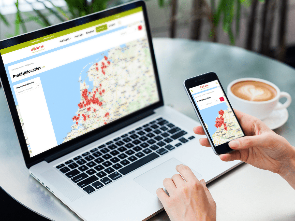 Zorg ervoor dat mensen op jouw website met filters en locaties kunnen zoeken op een Google kaart. Wij voegen Google kaarten toe op jouw website.